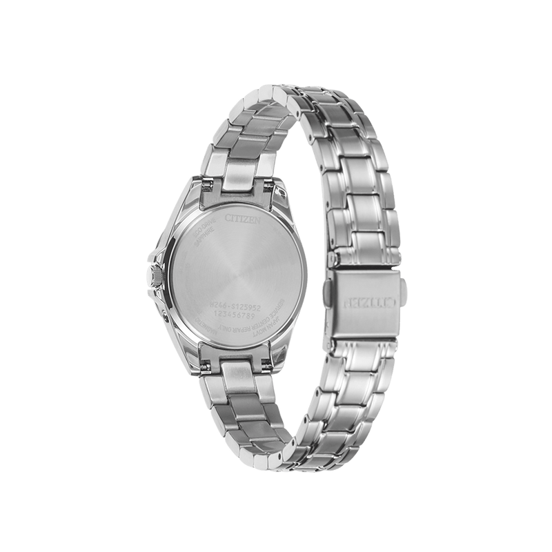 Dit horloge is uitgerust met het H246 uurwerk, een betrouwbaar solar quartz mechanisme dat functioneert met een CTL621F batterij. Met een batterijduur van ongeveer 24 maanden is het horloge gebruiksvriendelijk en onderhoudsarm.