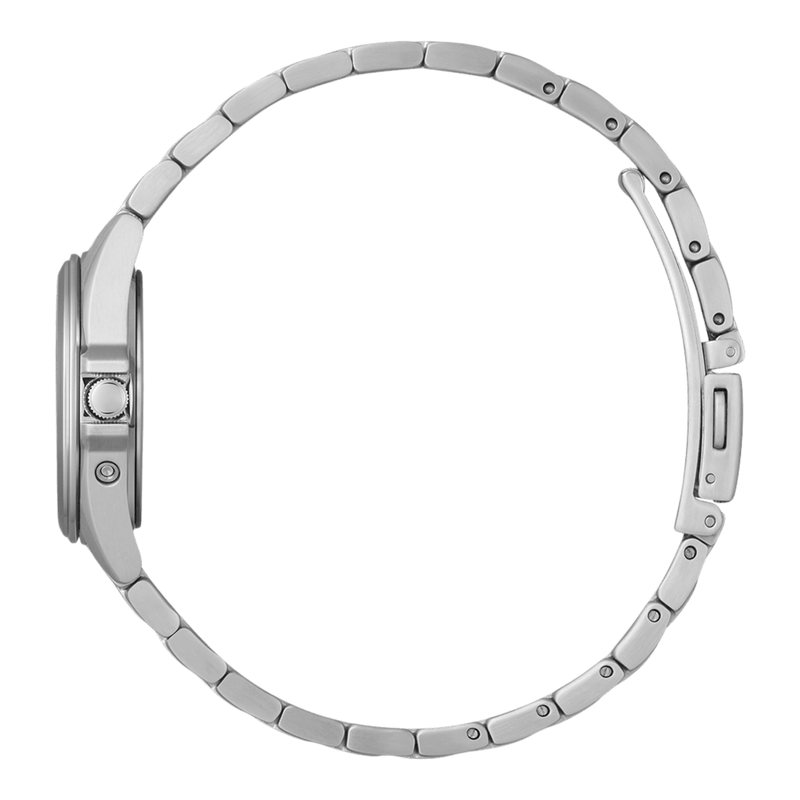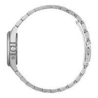 De band is vervaardigd uit hoogwaardig roestvrij staal en heeft een breedte van 14 mm, wat zorgt voor een comfortabele pasvorm. De vouwsluiting met drukknoppen biedt niet alleen een veilige sluiting, maar ook gemakkelijke toegang tot het horloge. Dit model is geschikt voor polsen met een omtrek van 145 mm tot 195 mm.