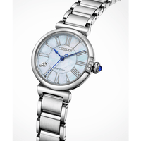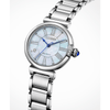 ✔ Elegant en verfijnd: Parelmoeren wijzerplaat en blauwe wijzers voor een subtiele, vrouwelijke uitstraling.