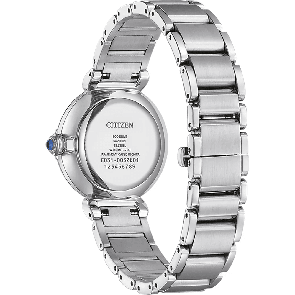 De Citizen Dames Eco-Drive EM1060-87N uit de herfst/wintercollectie van 2023 biedt een perfecte balans tussen verfijnde stijl en milieuvriendelijke technologie. Met zijn elegante parelmoeren wijzerplaat en blauwe wijzers straalt dit horloge een tijdloze schoonheid uit. De roestvrijstalen kast met een diameter van 29.5 mm en een kastdikte van 8.3 mm zorgt voor een slanke en verfijnde uitstraling, ideaal voor elke gelegenheid.