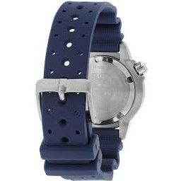 De kast van roestvrij staal, met een diameter van 33.5 mm en een dikte van 11.3 mm, biedt een stevige en robuuste uitstraling zonder in te boeten aan stijl. Het horloge is uitgerust met de Eco-Drive-technologie, aangedreven door licht, waardoor u geen batterijen hoeft te vervangen. De siliconenband is comfortabel en duurzaam, ideaal voor langdurig gebruik onder water.