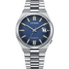 De Citizen Tsuyosa Automaat NJ0151-88L uit de lente/zomercollectie van 2023 is een elegant en verfijnd horloge dat klassieke horlogevakmanschap combineert met moderne technologie. Dit model valt op door zijn opvallende blauwe wijzerplaat en zilverkleurige accenten, wat het een tijdloze uitstraling geeft. De roestvrijstalen kast met een diameter van 40 mm en een kastdikte van 11.7 mm zorgt voor een robuuste maar comfortabele pasvorm, geschikt voor zowel zakelijke als casual gelegenheden.