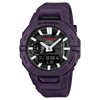 De slanke kast van 48,5 × 43,9 × 16 mm weegt slechts 53 g en is gemaakt van schokbestendig bio‑hars — comfortabel, duurzaam en geschikt voor dagelijks gebruik. De combinatie van paars en zwart geeft dit model een frisse, sportieve uitstraling. Het horloge is waterbestendig tot 20 bar, ideaal voor zwemmen en vrije tijd.