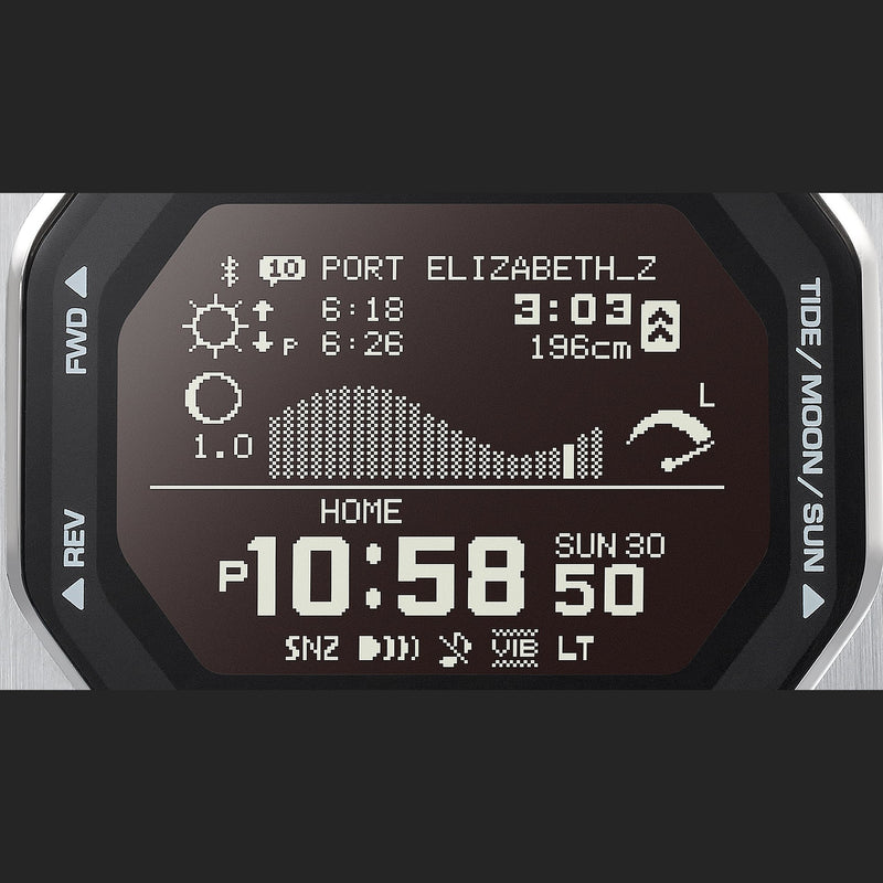 Dit model is uitgerust met Bluetooth-functionaliteit voor automatische tijdaanpassing, meldingen van inkomende oproepen en berichten, én uitgebreide trainingstracking via de Casio WATCHES-app. Ideaal voor watersporters: dankzij de getijdengrafiek en zonsopgang-/zonsondergangweergave blijft u altijd voorbereid. Het horloge toont ook maangegevens, snelheidsmetingen en beschikt over een geheugen voor 100 trainingssessies.