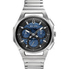 De Bulova Curv heeft een kastdiameter van 44 mm en een kastdikte van 10,1 mm, wat zorgt voor een moderne en robuuste uitstraling. De blauwe wijzerplaat met zilverkleurige wijzers en de zilverkleurige roestvrijstalen kast geven het horloge een stijlvolle uitstraling. Het horloge is uitgerust met een betrouwbaar Citizen quartz uurwerk en is voorzien van een saffierglas, dat de wijzerplaat beschermt tegen krassen. De zilverkleurige roestvrijstalen band met vlindersluiting en drukknoppen biedt zowel comfort als veiligheid. Dit horloge is waterbestendig tot 3 Bar en geschikt voor dagelijks gebruik.