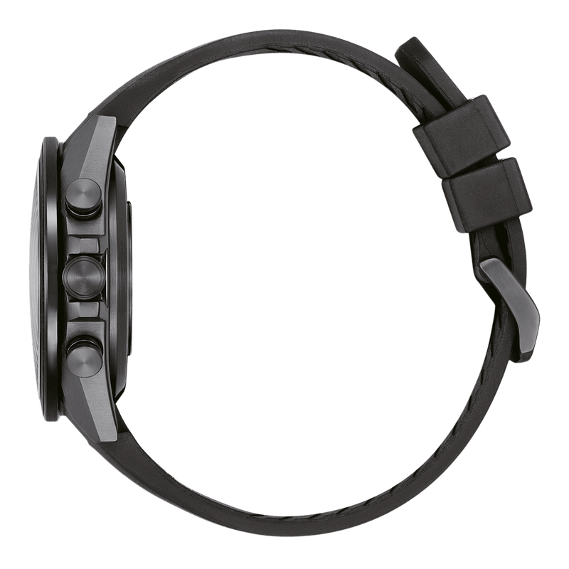 De kast van dit horloge is gemaakt van Super Titanium™ met een Duratect DLC-coating, wat het extreem licht en tegelijkertijd buitengewoon duurzaam maakt. Met een diameter van 44 mm en een dikte van 15 mm heeft het een robuuste uitstraling die wordt versterkt door de grijze titanium afwerking. De zilveren wijzerplaat wordt beschermd door antireflecterend saffierglas, wat zorgt voor een kristalheldere zichtbaarheid, zelfs in fel licht.