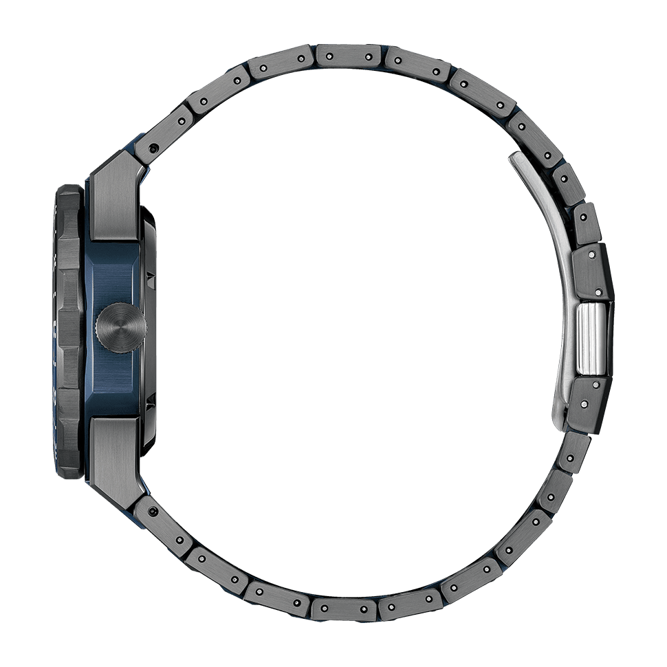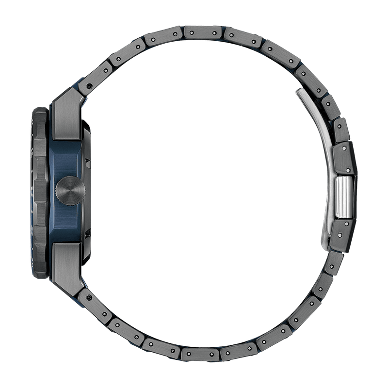 De Citizen Series 8 880 GMT Limited Edition NB6036-52N viert het 100-jarig bestaan van het eerste Citizen-horloge en biedt een combinatie van verfijning en functionaliteit. Deze gelimiteerde editie van 2.200 stuks wereldwijd heeft een unieke tweekleurige kast van grijs en blauw roestvrij staal, met een geïntegreerde armband die perfect aansluit op het ontwerp. De blauwe wijzerplaat van parelmoer zorgt voor een opvallende en luxe uitstraling. Dit horloge is uitgerust met het Caliber 9054 mechanische uurwerk en biedt een GMT-functie waarmee u tot drie tijdzones kunt bijhouden, ideaal voor internationale reizigers. Met een gangreserve van 50 uur, een magnetische weerstand die de nauwkeurigheid behoudt in de moderne digitale wereld, en waterbestendigheid tot 100 meter is dit horloge perfect voor zowel stijl als prestaties.