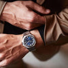 Dit horloge is uitgerust met een mechanisch automatisch uurwerk (kaliber 0950) met een indrukwekkende gangreserve van 50 uur. Dit betekent dat u het horloge met vertrouwen kunt dragen, wetende dat het nauwkeurig blijft lopen, zelfs als het enige tijd niet gedragen wordt. Het ontspiegelde saffierglas zorgt voor uitstekende zichtbaarheid, terwijl de roestvrijstalen kast en band duurzaamheid en stijl combineren. De waterbestendigheid tot 10 bar maakt het horloge geschikt voor zwemmen en dagelijkse activiteiten.
