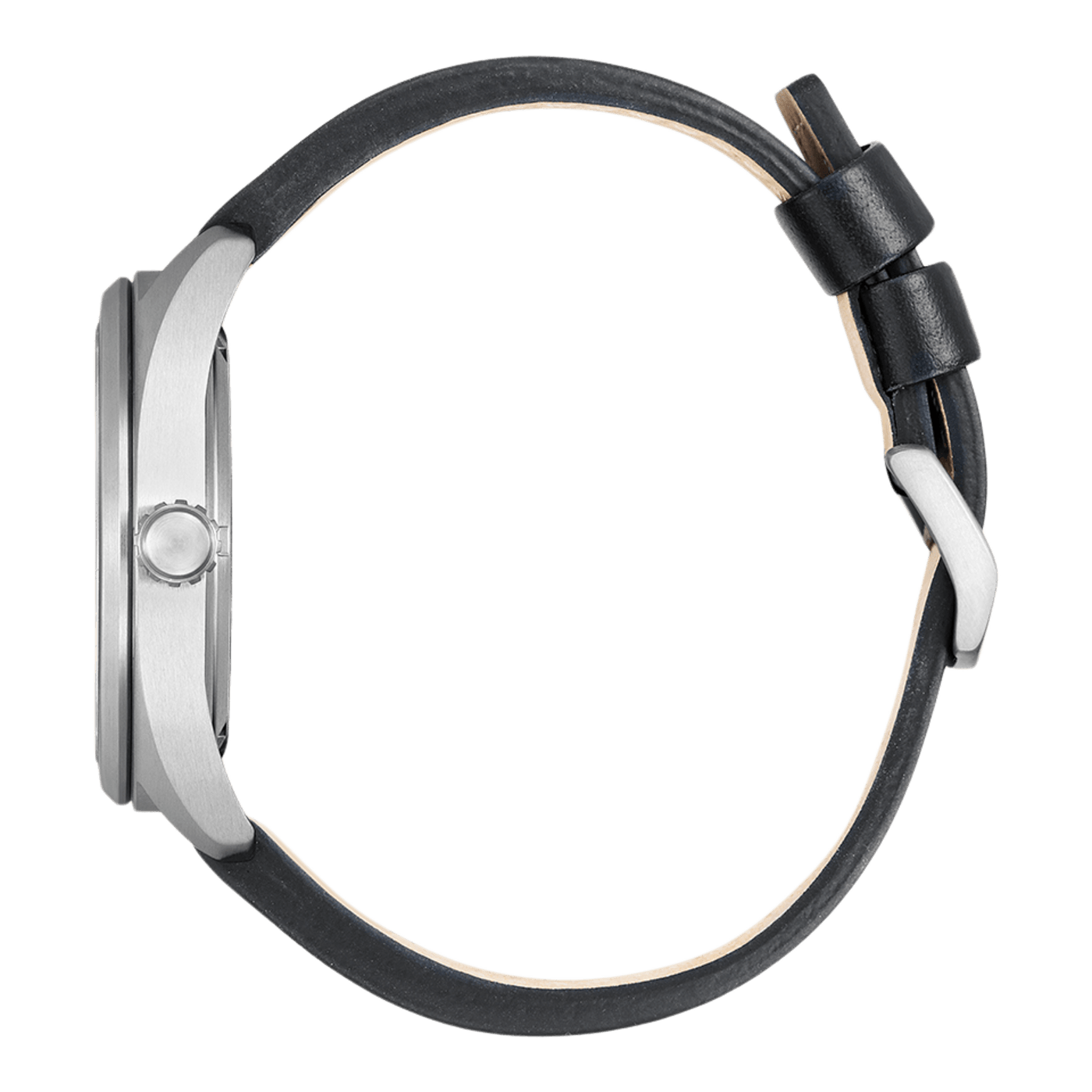 Elegante uitstraling: De combinatie van de zwarte wijzerplaat en het leren band maakt dit horloge perfect voor elke gelegenheid.