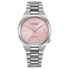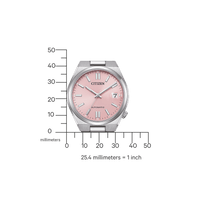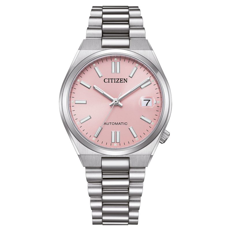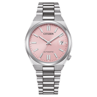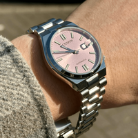 De Citizen Tsuyosa NJ0200-50Z is een stijlvol mechanisch herenhorloge dat moderne elegantie combineert met robuuste techniek. De lichtroze wijzerplaat springt direct in het oog en vormt een verfijnd contrast met de zilverkleurige kast en band. Dankzij het automatische kaliber 8210-P21 met een gangreserve van 42 uur en een nauwkeurigheid van ±20 seconden per dag, is dit horloge niet alleen een esthetische keuze, maar ook een betrouwbare metgezel voor elke dag.