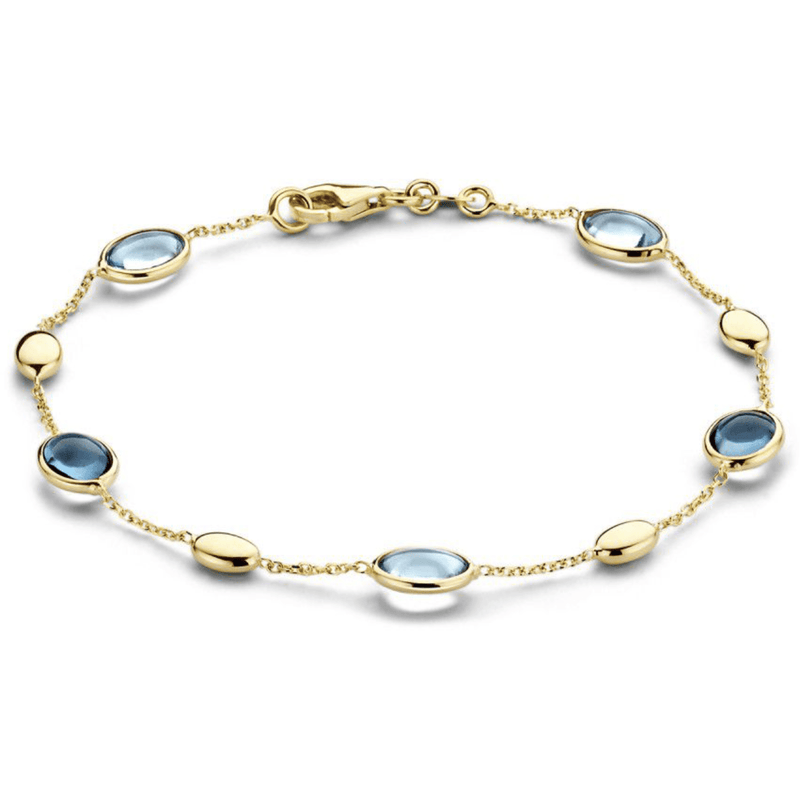 Geelgouden armband met blauwe edelstenen topaas en london blue topaas AW136735
