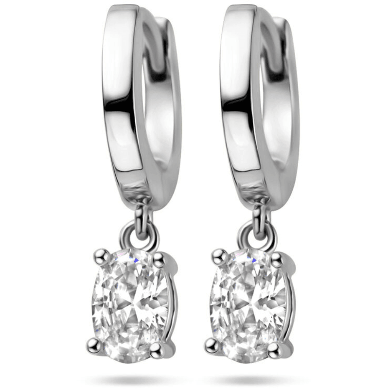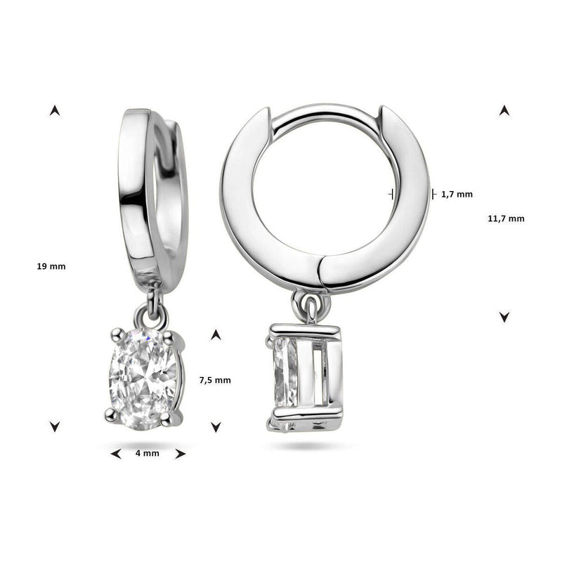 Gerhodineerd 925 zilveren klapoorringen uitgevoerd met zirkonia. De oorringen hebben een totale hoogte van 19mm.