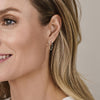 Gerhodineerd 925 zilveren oorknop uitgevoerd met zirkonia. De oorknop heeft een totale lengte van 3.5cm en een schakelbreedte van 1.7mm. De oorknop wordt per stuk verkocht.