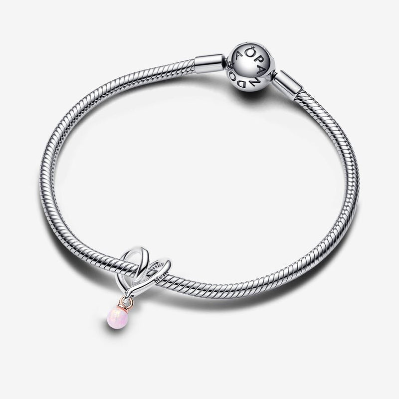 De Pandora Bedel Gedraaid Hart 783242C01 is een verfijnde tweekleurige hanger, gemaakt van sterlingzilver en verguld met 14k roségoud. Het ontwerp vormt een elegant gedraaid hart met de gravures "There is no one like you" en "Mum", waarbij de "u" een hartvorm heeft. Een roze laboratoriumgemaakte opaal hangt subtiel aan de bedel, wat de schoonheid van moederliefde symboliseert. Een betekenisvol cadeau en een bijzondere toevoeging aan je Pandora Moments-collectie. Verkrijgbaar bij Juwelier van Dam in Ermelo.