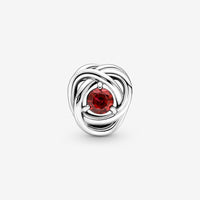 Geef je sieradencollectie een persoonlijke touch met de Juli Geboortesteen Oneindige Cirkel Bedel. Dit sterlingzilveren sieraad heeft een oneindige vlechtstructuur met in het midden een diep rood man-made kristal, dat symbool staat voor passie en kracht. Een elegante en betekenisvolle toevoeging aan je Pandora Moments-armband of ketting.