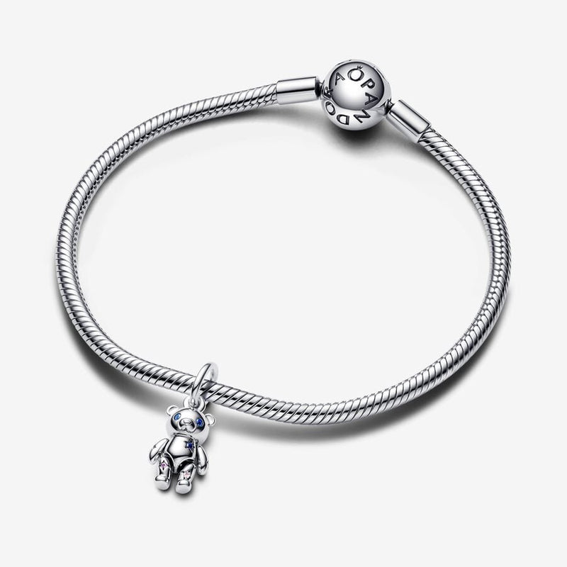 De Pandora Bedel Teddy Beer 792986C01 is een charmante sterlingzilveren hanger met beweegbare armen en benen. Opengewerkte sterren met fonkelende stenen en een blauwe man-made kristal in een stervormig hart maken deze bedel extra bijzonder. Een magische toevoeging aan je Pandora Moments-armband. Verkrijgbaar bij Juwelier van Dam, officiële Pandora-dealer.