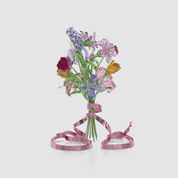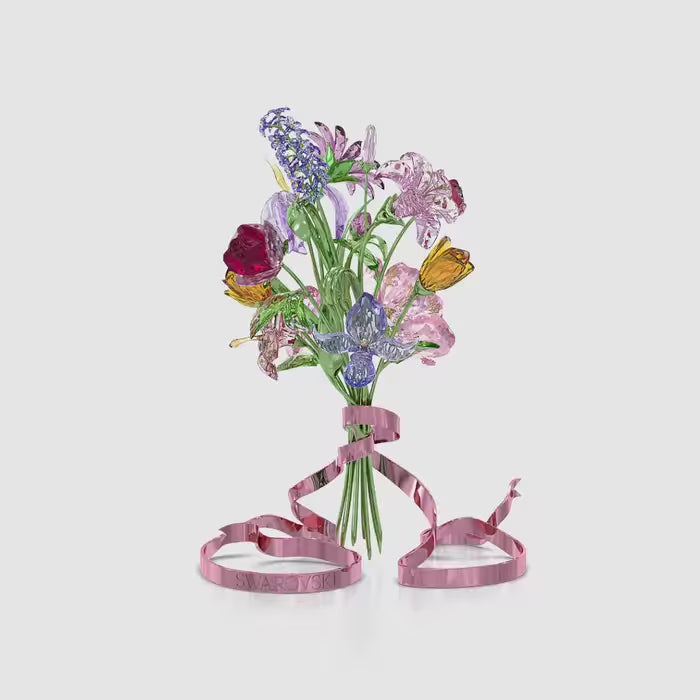 Voor de allereerste keer heeft Swarovski een levensgroot boeket van schitterende gekristalliseerde bloemen gecreëerd. Dit bijzondere arrangement bevat 12 lente- en zomerbloemen in verschillende tinten, elk samengesteld met uitgelezen aandacht voor detail en complexiteit. In totaal heeft deze vrijstaande creatie 5.826 facetten met accenten in gelakt metaal, waaronder de groene stelen en het roze lint met Swarovski erop gegraveerd. Dit boeket is een meesterstuk en de ultieme demonstratie van de savoir-faire van Swarovski. Het zou een spectaculair tafelstuk vormen of een onvergetelijk cadeau voor een verjaardag, Moederdag of bruiloft. Er is geen vaas of voetstuk nodig. Decoratief voorwerp. Geen speelgoed. Niet geschikt voor kinderen onder de 15 jaar.