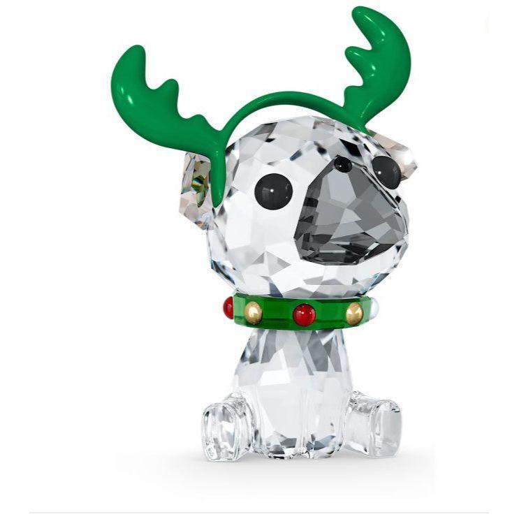 Geef uw decoratie voor de feestdagen een speels accent met deze onweerstaanbaar schattige viervoeter. Het figuurtje met 313 kristallen facetten, dat een groengelakte metaal gewei op heeft en een kristallen halsband draagt, is een eerbetoon aan het gezelligste seizoen van het jaar en roept fijne jeugdherinneringen op. Ideaal om cadeau te doen aan baasjes van een mopshond. Combineer met de andere verkrijgbare hondfiguurtjes en verzamel ze allemaal. Decoratieobject. Geen speelgoed. Niet geschikt voor kinderen jonger dan 15 jaar.