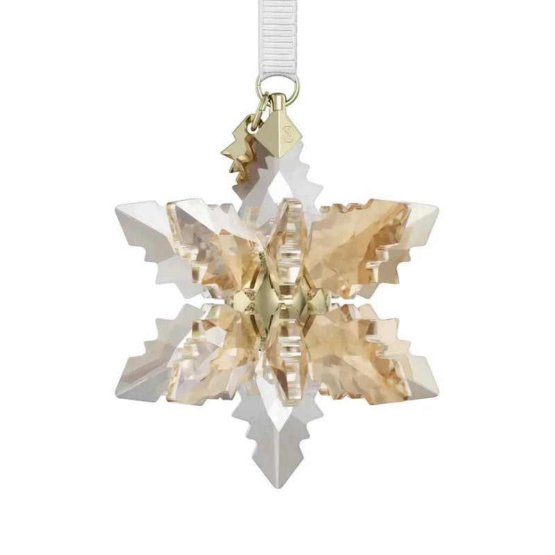De magie van de winter komt tot leven met het Swarovski ornament Annual Edition 3D Festive 2024 5674348. Dit goudkleurige 3D-ontwerp viert de unieke schoonheid van sneeuwvlokken en is een opvallend voorbeeld van Swarovski's vakmanschap, met 340 facetten en 18 individuele pieken. Het ornament hangt aan een wit grosgrain lint en is afgewerkt met een glanzend champagnegoudkleurig middenstuk en een label waarop “2024” is gegraveerd.