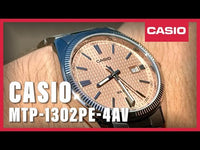De Casio Vintage MTP-1302PE-4AVEF is een elegant horloge dat klassieke charme en moderne functionaliteit perfect combineert. Met afmetingen van 44,2 × 38,5 × 9,4 mm en een gewicht van 107 gram is dit horloge stevig en comfortabel om te dragen. De kast is vervaardigd van ion-plated materiaal, wat zorgt voor een luxe uitstraling en uitstekende bescherming tegen krassen. Het mineraalglas biedt een helder zicht op de wijzerplaat, die is uitgerust met drie wijzers voor uur, minuut en seconde, evenals een handige datumweergave.