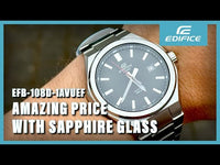 De Casio Edifice EFB-108D-1AVUEF is een verfijnd en duurzaam horloge dat de perfecte balans biedt tussen stijl en functionaliteit. Met een kastafmeting van 47,5 × 45 × 8,7 mm en een gewicht van 133 g, heeft dit horloge een robuuste uitstraling zonder in te boeten op comfort. De kast is gemaakt van roestvrij staal, en de roestvrijstalen band met massief bandje en one-touch vouwsluiting zorgt voor een veilige en comfortabele pasvorm.
