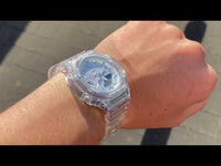 De Casio G-Shock Skeleton GMA-S2100SK-7AER combineert een moderne, doorzichtige look met de robuustheid die u van een G-Shock verwacht. Dit horloge valt op door zijn koolstof-harsconstructie en Carbon Core Guard-structuur, waardoor het uitzonderlijk schokbestendig is. Met een gewicht van slechts 41 gram en afmetingen van 46.2 × 42.9 × 11.2 mm, draagt het horloge licht en comfortabel. Daarnaast biedt het een waterbestendigheid tot 200 meter, wat het ideaal maakt voor zowel dagelijks gebruik als sportieve activiteiten.