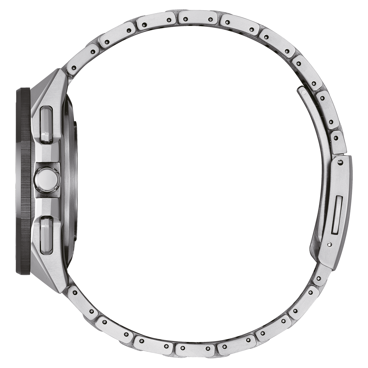 Verder beschikt dit model over een eeuwigdurende kalender, stopwatch tot 23u 59m (1/20 sec nauwkeurig), dual time, 24-uursweergave, local time alarm, en een batterij- en lichtindicator. De kast en band zijn gemaakt van Super Titanium™, een materiaal dat vijf keer harder en aanzienlijk lichter is dan roestvrij staal.