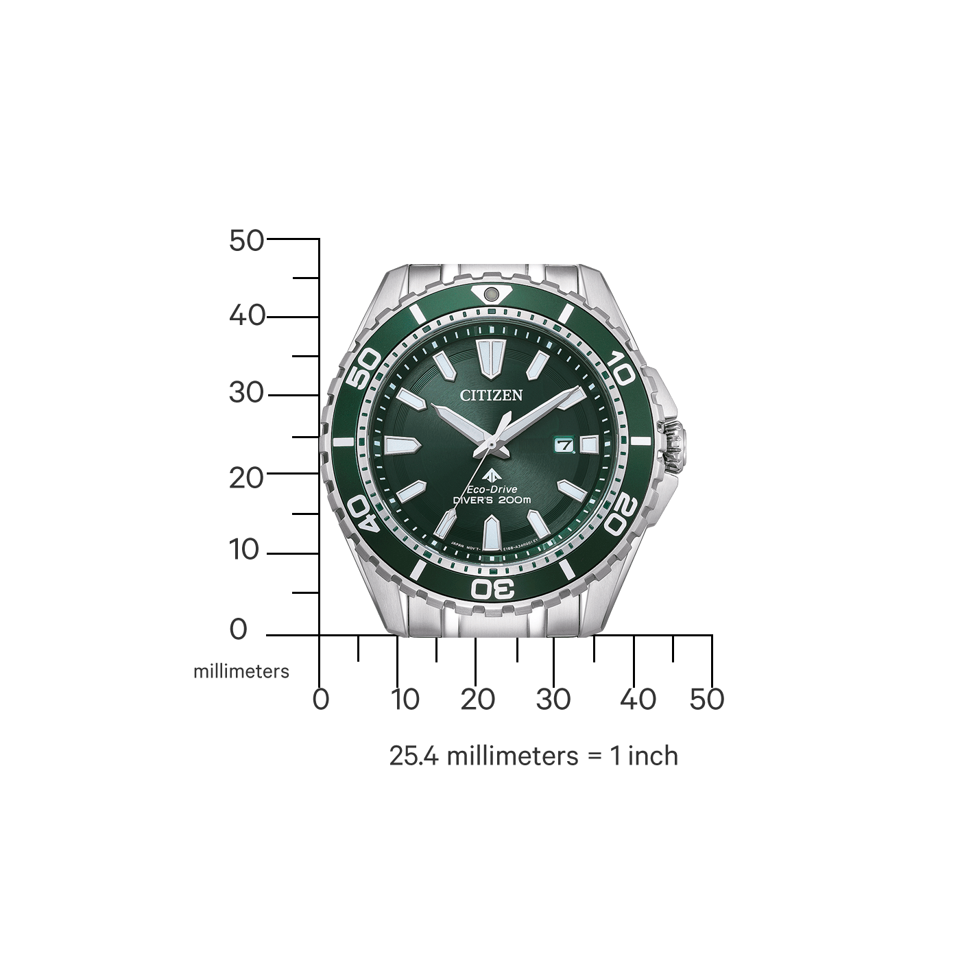 De Citizen ProMaster Marine BN0199-53X is een indrukwekkend duikhorloge dat de perfecte combinatie van stijl en functionaliteit biedt. Dit model, onderdeel van de 2023 lente/zomercollectie, heeft een opvallende groene wijzerplaat met glow-in-the-dark wijzers, wat zorgt voor een uitstekende zichtbaarheid, zelfs in de diepste wateren. Met een kastdiameter van 44,5 mm en een kastdikte van 12 mm is dit horloge zowel robuust als comfortabel om te dragen. De kast is gemaakt van hoogwaardig roestvrij staal en is uitgerust met een geschroefde achterdeksel voor extra bescherming.