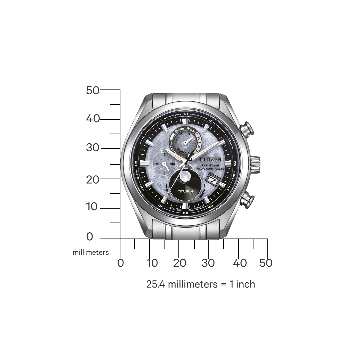 Specificaties van de Citizen Radio Controlled 'Tsuki-yomi' Moonphase BY1010-81H