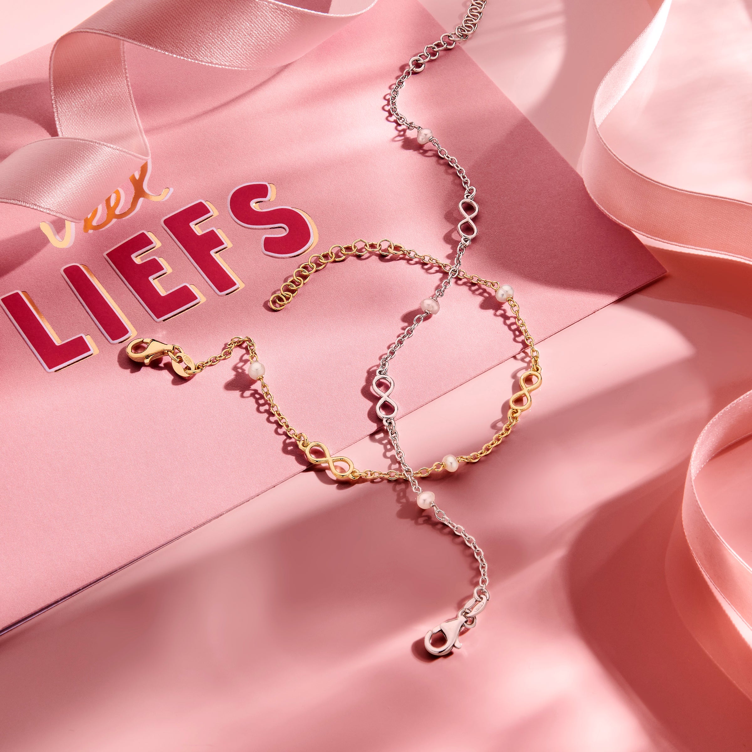 vDam Armband Infinity En Parels 16cm + 3 Cm 1 Micron Zilver Gerhodineerd 1336157 16cm