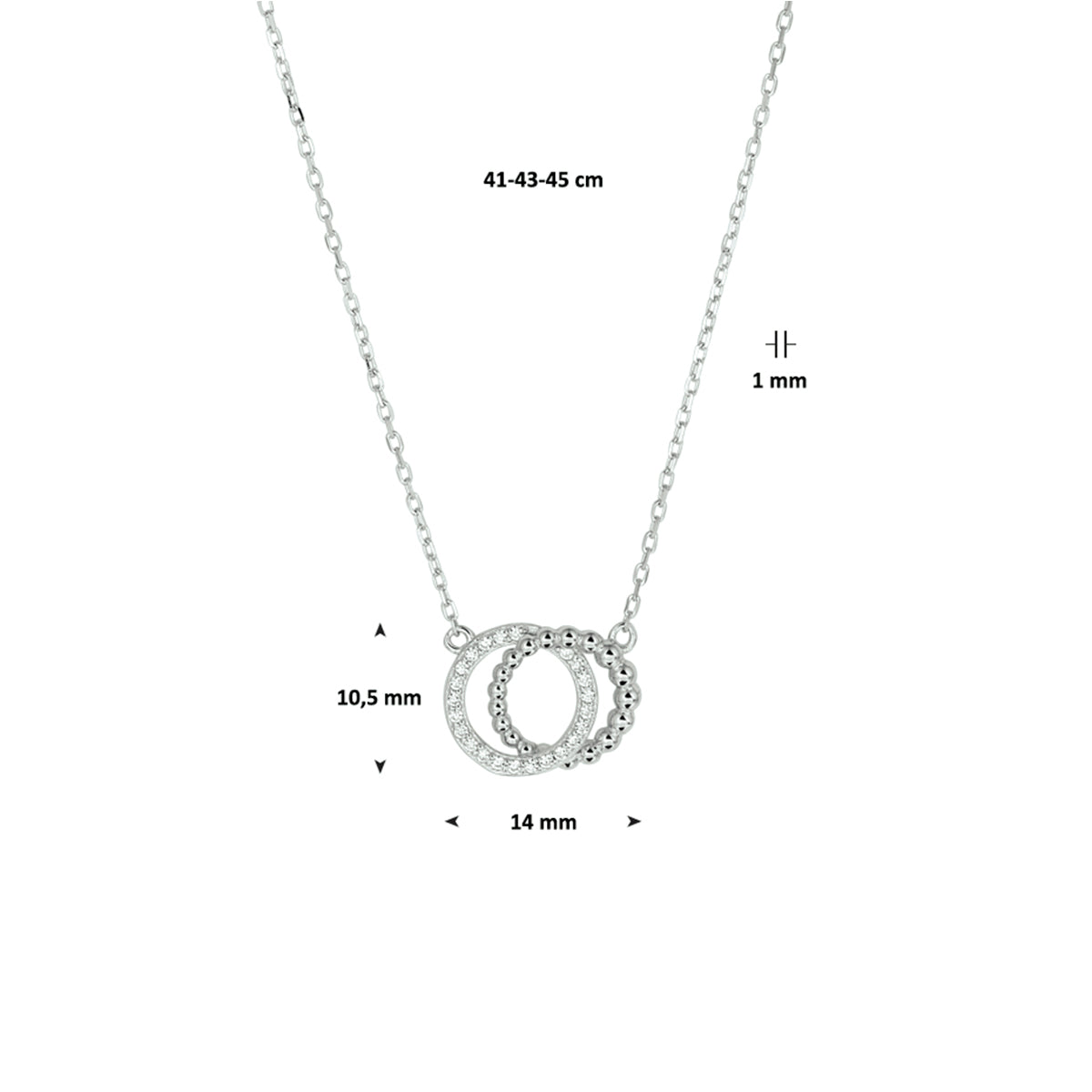 vDam Ketting Rondjes Zirkonia 41cm - 43 - 45 Cm Zilver Gerhodineerd 1329248 41cm