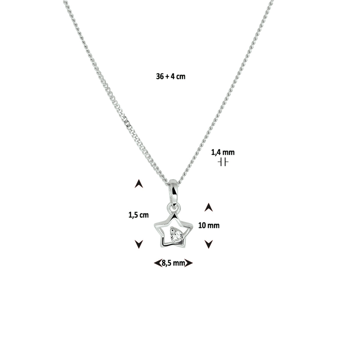 vDam Ketting Ster Zirkonia 36cm + 4 Cm Zilver Gerhodineerd 1329893 36cm