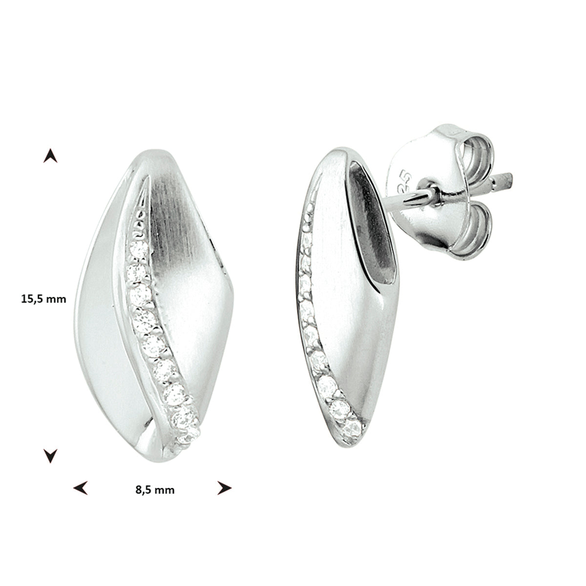 vDam Oorknoppen Zirkonia Poli/mat Zilver Gerhodineerd 1332830