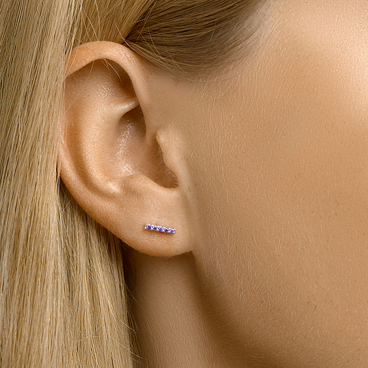 vDam Oorknoppen Balkje Paars Zirkonia Zilver Gerhodineerd 1332972