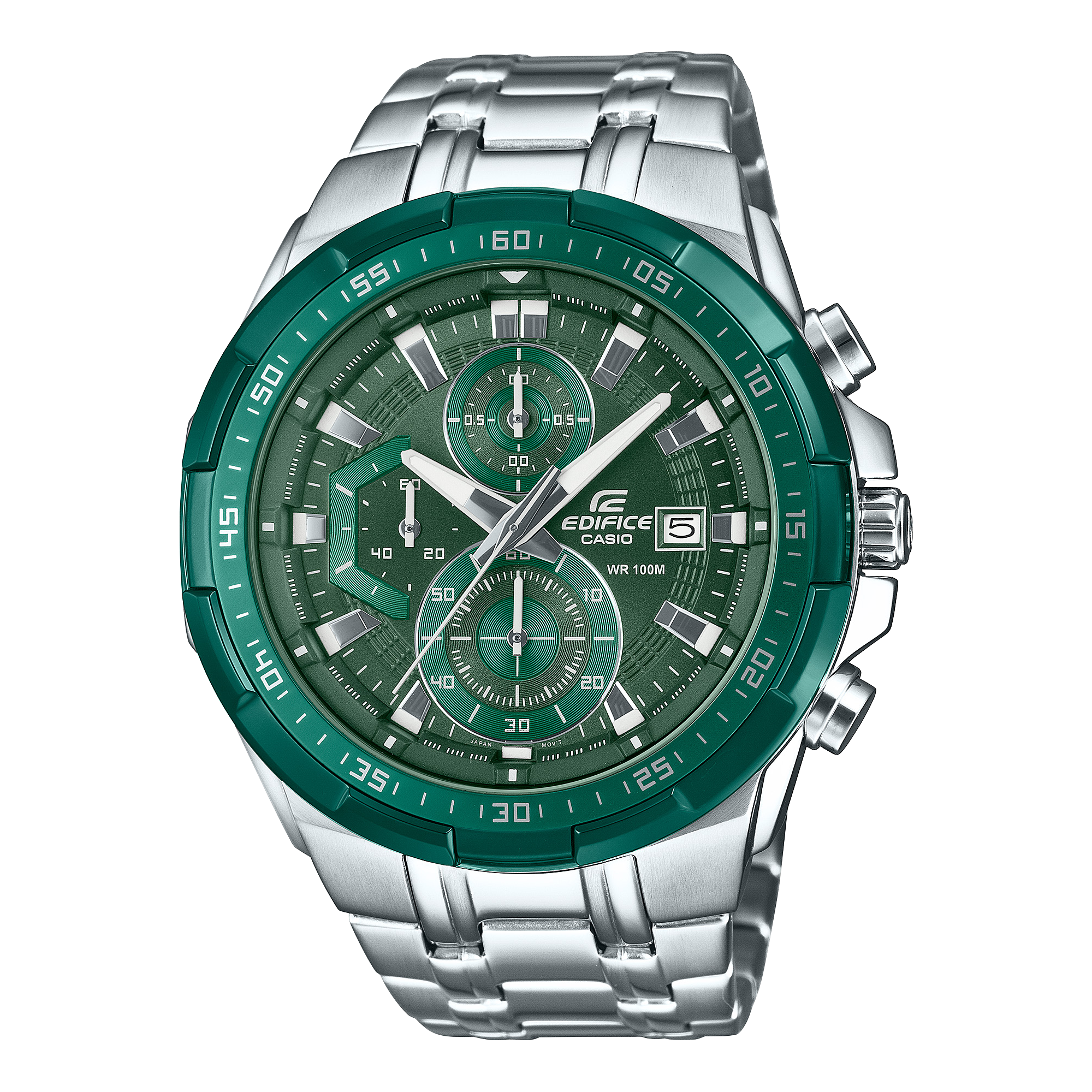 De Casio Edifice EFR-539DE-3AVUEF combineert een krachtige uitstraling met betrouwbare techniek. De diepe groene wijzerplaat in combinatie met de zilverkleurige stalen kast en band zorgt voor een opvallend sportieve, maar stijlvolle look. Met functies als een stopwatch, datumvenster en een waterdichtheid tot 10 bar is dit horloge niet alleen een eyecatcher, maar ook een praktisch instrument voor dagelijks gebruik en sportieve gelegenheden.