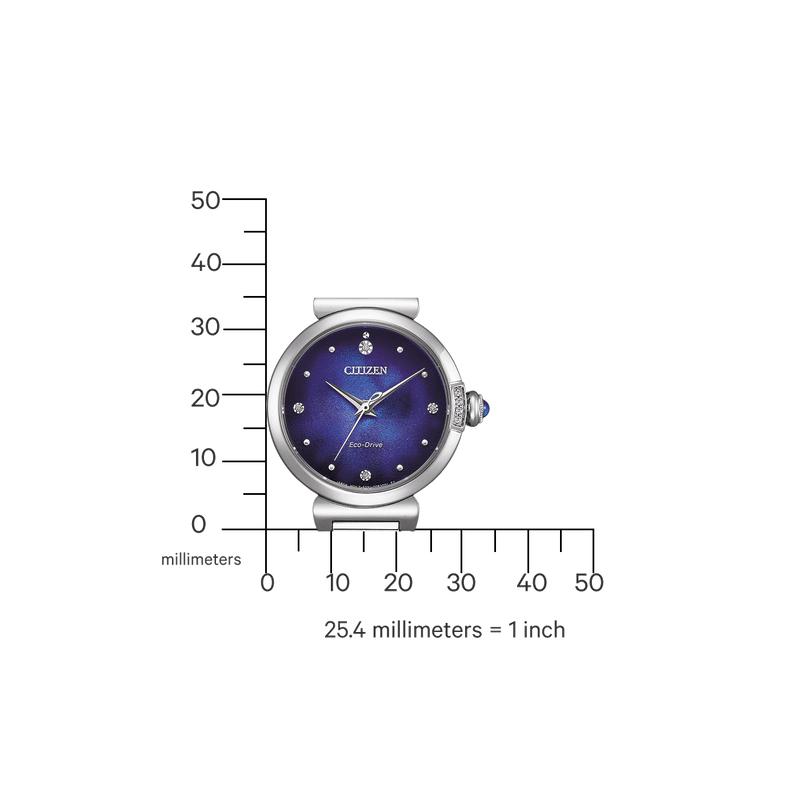De Citizen EM1060-87L maakt deel uit van de exclusieve ‘UNITE with BLUE’-collectie en is wereldwijd gelimiteerd tot slechts 2.000 stuks. Dit verfijnde dameshorloge straalt rust en elegantie uit, met een diepblauwe wijzerplaat die geïnspireerd is op de kalme zee. Dankzij innovatieve pigmentvrije kleuring zorgt het oppervlak van de wijzerplaat voor subtiele kleurveranderingen onder invloed van licht, wat een bijzonder visueel effect creëert.