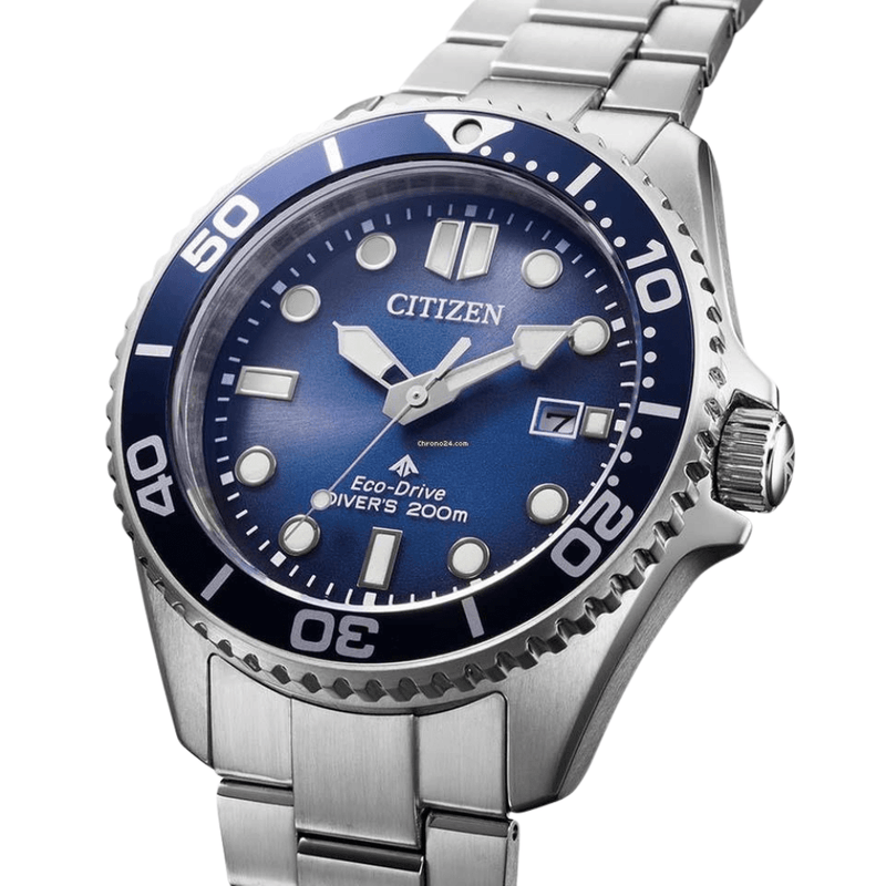 De Citizen BN0260-54L combineert het functionele DNA van de Promaster-serie met een frisse blauwe look. De blauwe wijzerplaat en lunette zorgen voor een maritieme uitstraling, perfect passend bij zijn functie als professioneel duikhorloge.