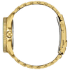 De band is eveneens uitgevoerd in goudkleurig roestvrij staal en sluit met een vouwsluiting met drukknoppen. Binnenin tikt het Eco-Drive uurwerk met kaliber E168, dat gevoed wordt door licht en een gangreserve heeft van maanden.