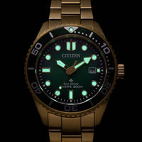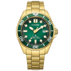 De Citizen Promaster BN0262-59W weet robuustheid en elegantie moeiteloos te combineren. Dit duikhorloge uit de Promaster Marine-collectie onderscheidt zich met een opvallende goudkleurige kast en band, gecombineerd met een diepgroene wijzerplaat en bijpassende bezel. Het resultaat is een stijlvol en krachtig horloge dat geschikt is voor iedere gelegenheid – van onderwateravonturen tot zakelijke bijeenkomsten.