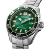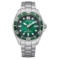 De Citizen BN0269-50W is een opvallende verschijning binnen de Promaster Dive-serie, uitgevoerd met een groene wijzerplaat en bijpassende bezel. Deze uitvoering voegt een frisse, moderne kleur toe aan het beproefde ontwerp van zijn zwarte variant en combineert een sportieve uitstraling met hoogwaardige technologie.