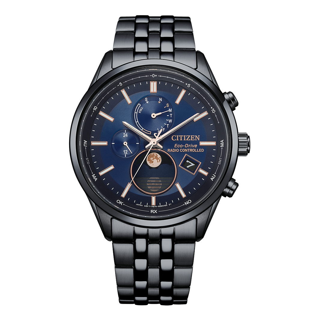 De Citizen BY1035-56L heeft een zwarte IP-gecoate roestvrijstalen kast van 42 millimeter met een dikte van 10,7 millimeter. De blauwe wijzerplaat met moonphase wordt beschermd door krasbestendig saffierglas. De bijpassende zwarte IP-stalen band met vouwsluiting geeft dit horloge een sportief-luxe karakter.