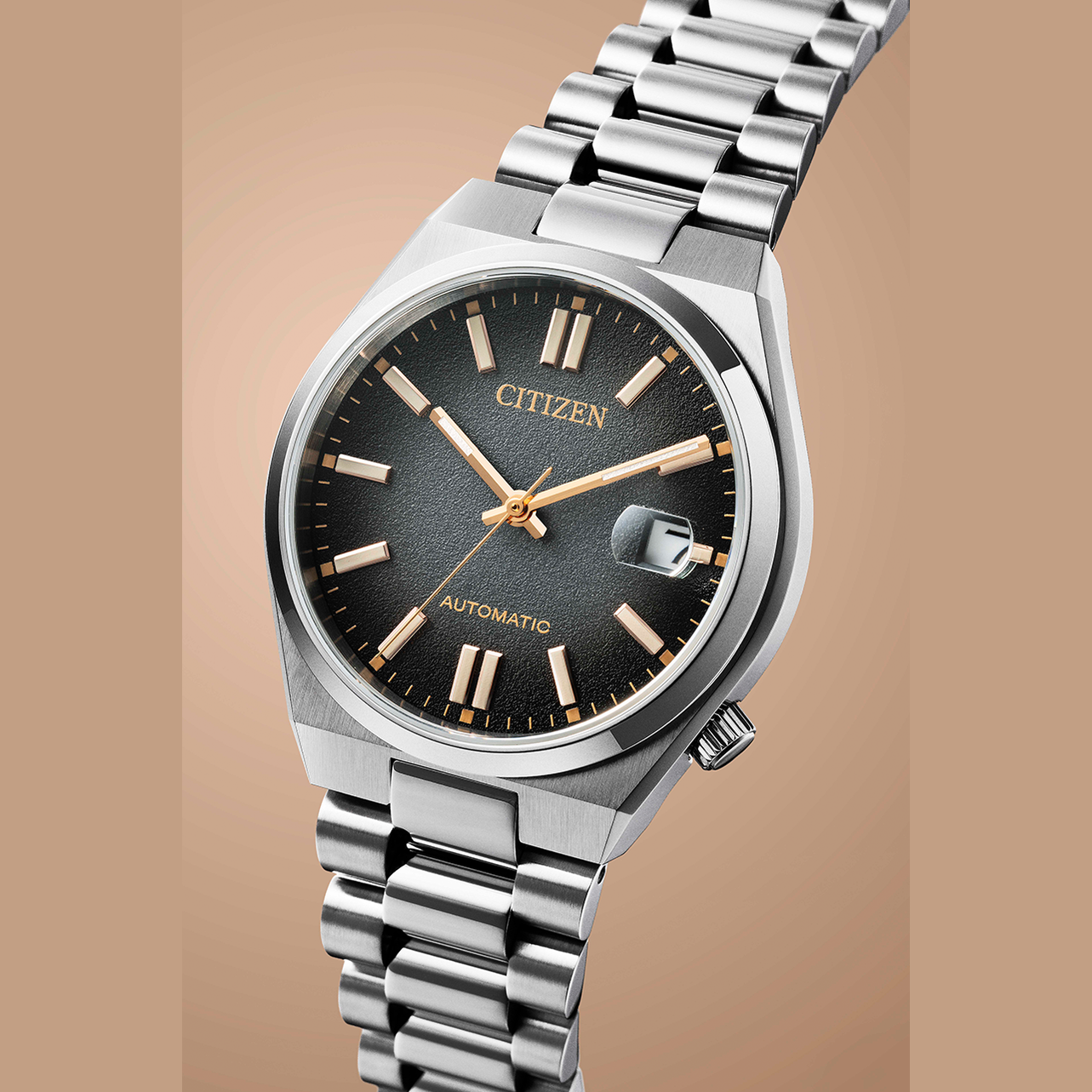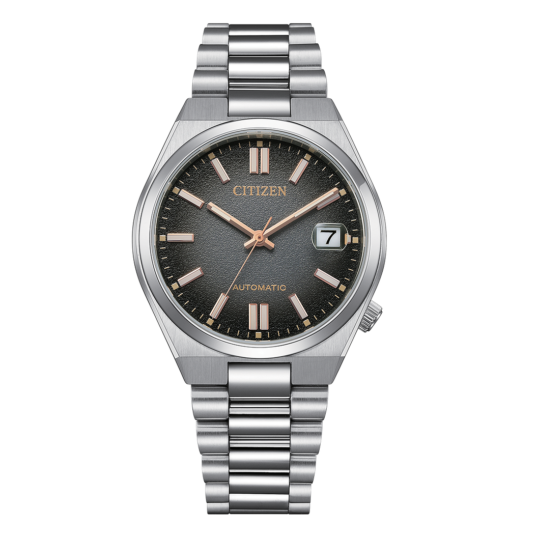 De Citizen Tsuyosa NJ0200-50E is een stijlvolle aanvulling op de populaire Tsuyosa-lijn en onderscheidt zich met zijn compacte kastdiameter van 37 millimeter. Het design is strak en modern, met een zwarte wijzerplaat die elegant contrasteert met de zilverkleurige roestvrijstalen kast en band.