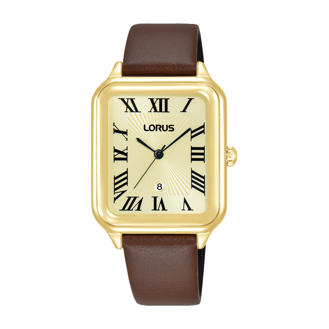 De Lorus RH742BX9 is een stijlvol dameshorloge met een klassieke en verfijnde uitstraling. De ronde stalen kast heeft een diameter van 29 mm en een slanke dikte van 7,9 mm, waardoor het horloge elegant en comfortabel om de pols ligt. De licht champagnekleurige sunray-wijzerplaat geeft het model een warme, chique uitstraling, die mooi combineert met de bruine leren band.