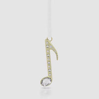 Creëer harmonie in uw feestdageninterieur met dit verfijnde ornament van een muzieknoot. De luxueuze ornament hangt aan een wit ripsband lint en is vervaardigd uit glanzend champagnegoudkleurig metaal en gedecoreerd met heldere kristallen aan beide zijden. Het geeft beeldschone lichtreflecties om het hele seizoen van te genieten. Het is een uniek cadeau voor iedereen die van vreugdevolle melodieën houdt. Decoratieobject. Geen speelgoed. Niet geschikt voor kinderen jonger dan 15 jaar.