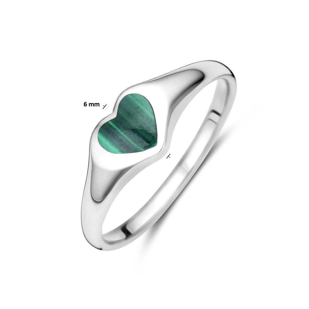 vDam Zilveren Gerhodineerde Malachiet Hartje Ring 1338873