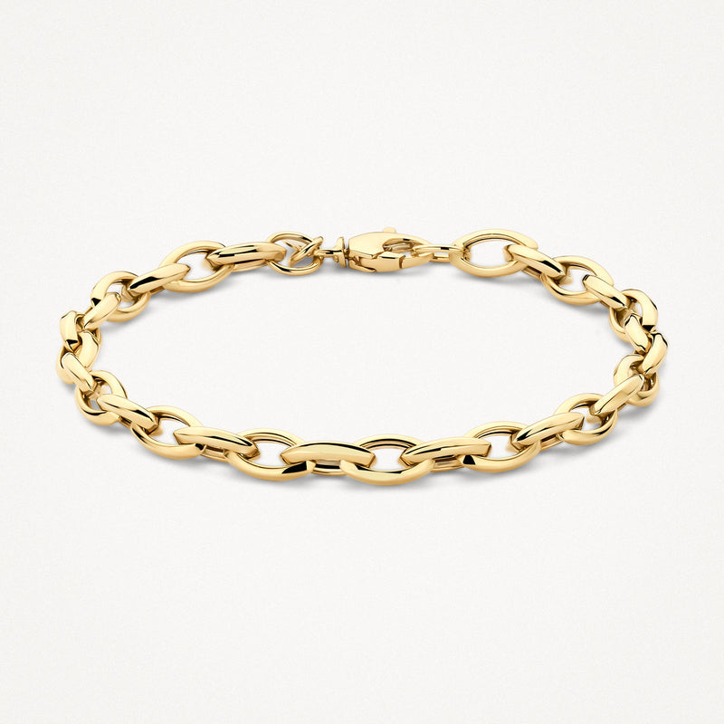 Ontdek deze schitterende 14k geelgouden schakelarmband van 18.5 cm. De jasseron schakels, met een robuuste materiaaldikte van 1.8 mm, creëren een tijdloze uitstraling. Deze armband voegt een klassiek, maar toch modern accent toe aan jouw look. Perfect om te dragen of cadeau te geven!
