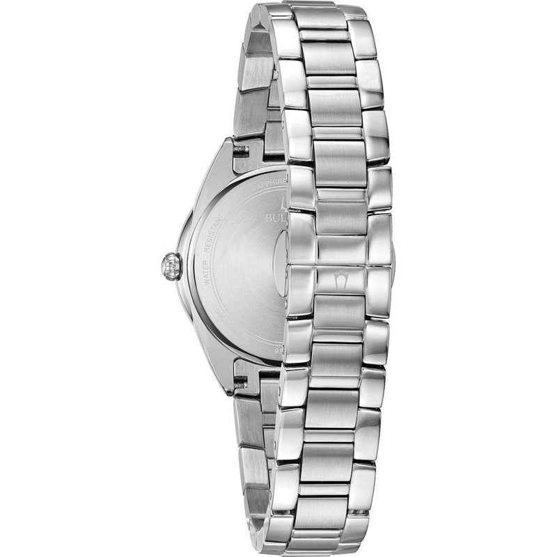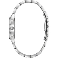 De Bulova 96P198 heeft een elegante kast met een diameter van 32 mm en een dikte van 8.6 mm. De parelmoer wijzerplaat in combinatie met zilveren wijzers geeft het horloge een klassieke en verfijnde uitstraling. Dit model is uitgerust met het betrouwbare Miyota quartz uurwerk 2036, dat een batterijduur van 36 maanden biedt. Het krasbestendige saffierglas zorgt voor extra duurzaamheid. Met een waterbestendigheid tot 3 bar is het horloge geschikt voor dagelijks gebruik, zoals handen wassen. De zilverkleurige schakelband met vlindersluiting zorgt voor een comfortabele pasvorm en een veilige sluiting.