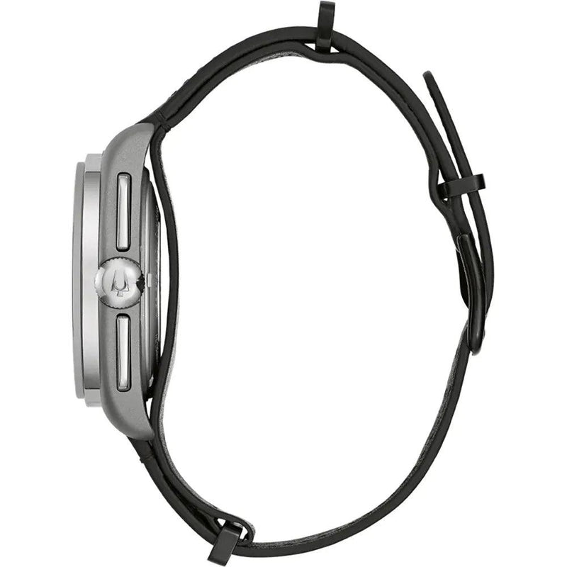 De Bulova Lunar Pilot heeft een kastdiameter van 45 mm en een kastdikte van 12 mm, wat zorgt voor een robuuste en stoere uitstraling. De grijze meteoriet wijzerplaat en wijzers, gecombineerd met de titanium en roestvrijstalen kast, maken dit horloge een opvallend en bijzonder accessoire. Het horloge wordt aangedreven door een betrouwbaar Miyota quartz uurwerk met een hoge frequentie van 262.000 Hz voor extreme precisie. Het saffierglas biedt uitstekende bescherming tegen krassen, en de zwarte leren NATO-band met gesp zorgt voor comfort en een perfecte pasvorm.