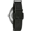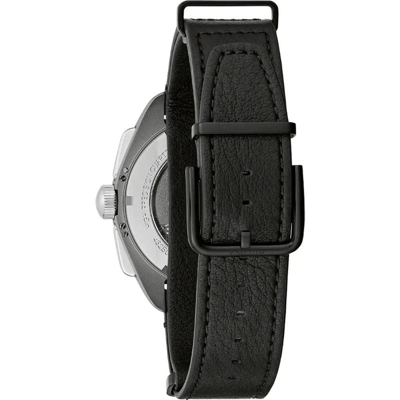 Het horloge heeft een kastdiameter van 45 mm en een kastdikte van 12 mm, wat zorgt voor een stevige en stoere uitstraling. Het saffierglas biedt uitstekende bescherming tegen krassen en dagelijkse slijtage, terwijl de geschroefde achterdeksel bijdraagt aan de duurzaamheid. Het horloge is waterbestendig tot 5 Bar, wat betekent dat het veilig is om te dragen tijdens het douchen. De zwarte NATO-band van leer biedt comfort en een stijlvolle, robuuste uitstraling.