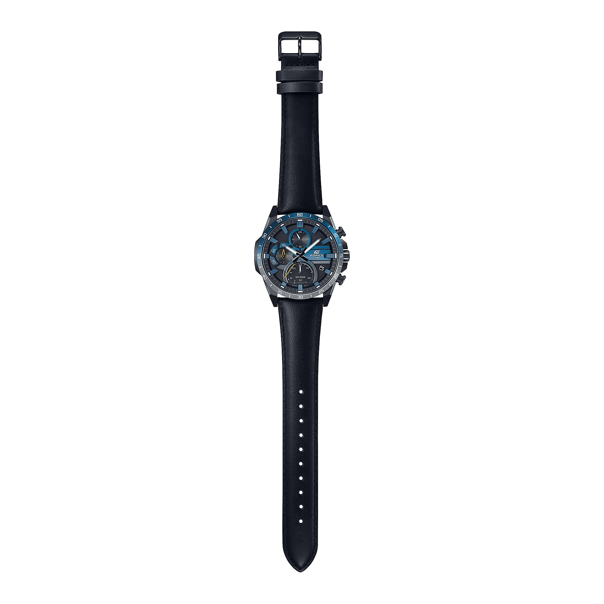 De Casio Edifice EQS-940NL-1AVUEF is een indrukwekkend horloge dat prestaties en stijl combineert. Met afmetingen van 49,5 × 49,5 × 12,5 mm en een gewicht van 74 g biedt dit horloge een stevige, maar comfortabele pasvorm. De kast is gemaakt van roestvrij staal, terwijl het bandje van echt leer zorgt voor een luxe uitstraling en een comfortabele pasvorm voor polsen van 175 tot 215 mm. De blauwe ion-geplateerde rand met titaniumcarbide-coating geeft het horloge een verfijnde en robuuste uitstraling.